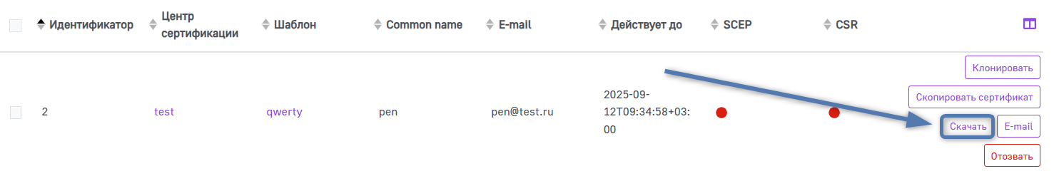 Скачать сертификатДля того чтобы скачать определенный сертификат, нажмите Скачать. После этого вам будет предложено выбрать пароль для шифрования сертификата.