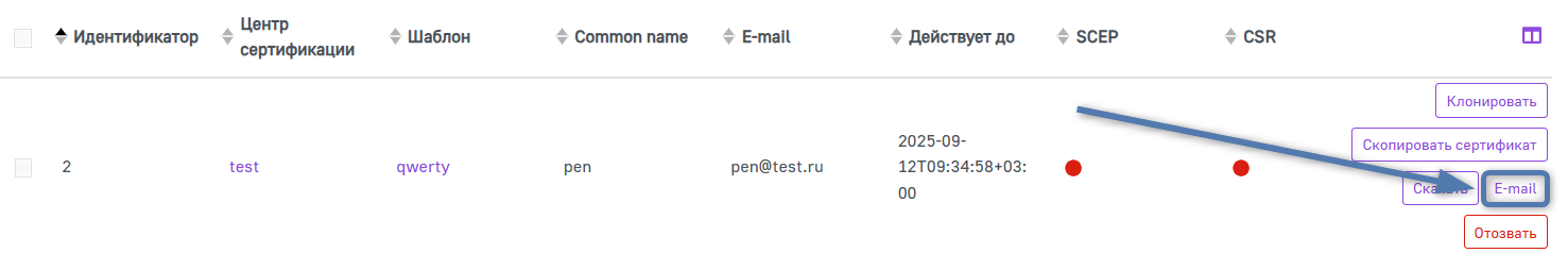 Также в режиме просмотра сертификата вы можете в конце страницы нажать кнопку E-mail.