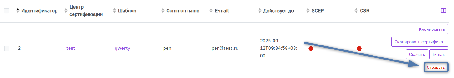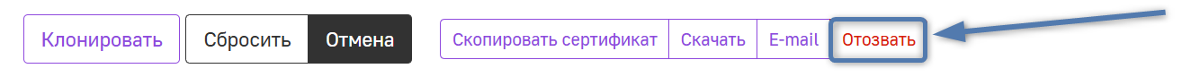 Отозвать сертификатДля того чтобы отозвать сертификат, нажмите Отозвать.