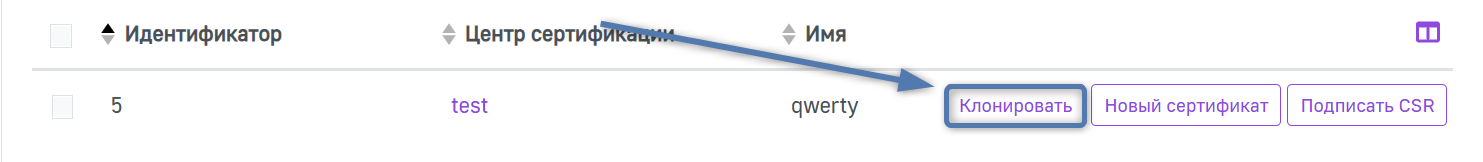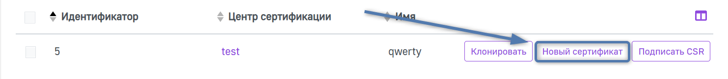 Вы можете отсортировать таблицу по Идентификатору, Центру сертификации и Имени в порядке возрастания или убывания с помощью иконки