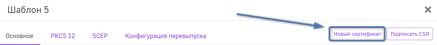 Также в режиме редактирования шаблона вы можете в начале страницы нажать кнопку Новый сертификат.