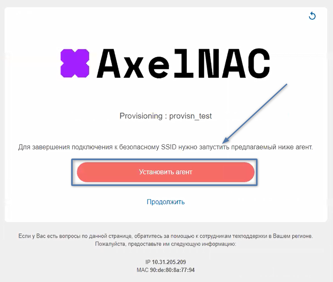После генерации сертификата вам будет предложено установить агент инициализации, который произведет конфигурацию вашего устройства. Для установки агента нажмите Установить агент.